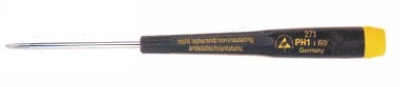 用于紧固和松开M3以下精密十字螺钉。 同时确保工具上不带任何静电荷,防止集成电路板精密电子元件 由于携带微小静电造成误动作和损坏。 适用于所有对静电荷放电敏感的精密电子元件工作环境。 手柄表面具有106-109欧姆电阻,确保静电接地缓慢释放, 快释易损坏精密电阻元件。