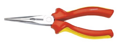 DIN / ISO 5745 铬钒钢材质,可在电压1000V以下带电工作。 可夹线、咬紧线材。 双材质手柄,握紧力更强,并带有保护设计。 ⋯201: 45°角弯嘴。