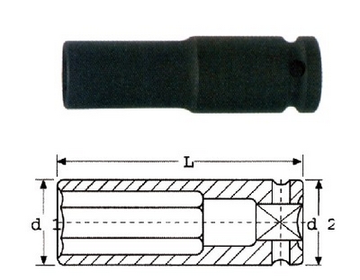 DIN3129 用于紧固和拆卸公制六角头螺栓和螺母,适合深孔操作 直接配合1/2"气动扳手使用 特殊铬钒钢材质,坚固耐用