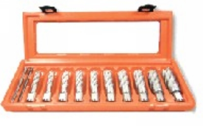 511 437 100: 切削深度25mm; 6枚钻头,孔径12-14-16-18-20-22mm, 塑性包装盒,包括一根锁紧销子。 511 437 200: 切削深度25mm; 10枚钻头,孔径2x12-2x14-1x16-2x18-1x20-2x22mm, 塑性包装盒,包括两根锁紧销子。 511 437 300: 切削深度50mm; 6枚钻头,孔径14-16-18-20-22-26mm, 塑性包装盒,包括一根锁紧销子。 511 437 400: 切削深度50mm; 10枚钻头,孔径2x14-1x16-