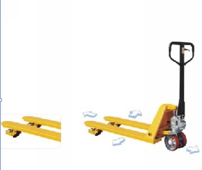 独特的四方位移动设计,除了前后移动外,还可以实现左右方向的移动。 适用于在狭窄通道内移动搬运货物。 并保持了一般手动液压搬运车的功能额特点。