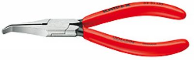 用以夹持最小直径的零部件及线,和扳折触点和继 电器弹簧;钳口表面抛光;40o弯嘴,扁平,凹面和梯形钳口;长度135,头部镀铬,塑料套柄