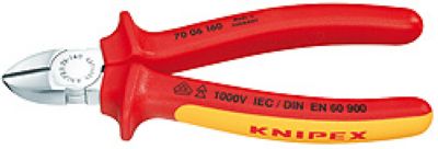 精密的剪切刀口适于剪切软线和硬线;切割硬度约为洛氏硬度62HRC;头部较窄,适用于小空间的操作;型 2:小偏刃;长度110,头部镀铬,双色双重材料绝缘手柄