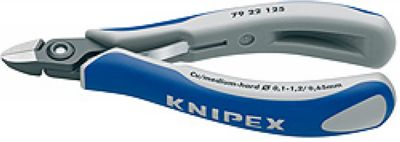 精密钳子,用于超精细的装配工作,如电子业和精密仪器业;精密磨削的锋利剪切刀口,带小偏刃的用于精密元件的精确剪切;无偏刃的用于齐根剪切;剪切刀口附加感应淬火,硬度约为64 HRC;采用螺丝铰接:可进行精确、无间隙的操作;精细的抛光铰接面,便于沿整个开口范围进行光滑、低摩擦的移动;低摩擦双弹簧,适合缓和平稳地开启钳口;非反光表面,重量轻;优质滚珠轴承钢锻造;圆头,无偏刃;长度125,头部抛光,双色双重材料手柄