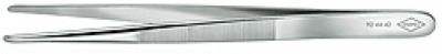 镊头圆形,较宽;手柄刻有格子图案;镊头圆形,宽度约2mm;镀镍