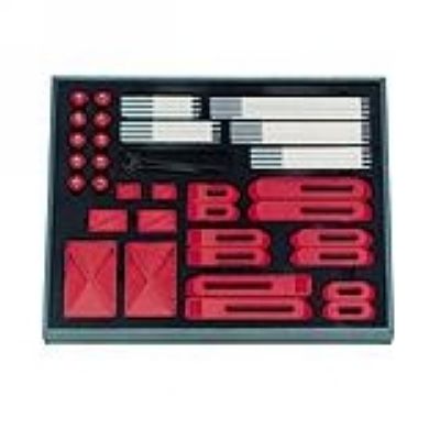 including 55 elements. Clamps, step blocks and nuts: high strength plastic PBT, red. Stud bolts: aluminium anodised.