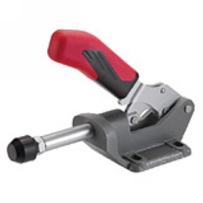 For push- and pull-clamping. (Equal operation of rod and lever). Heavy-duty version with long rod-guide. Base of malleable casting, varnished. Toggle parts and push rod are heat-treated steel, galvanized and passivated. Rivets made of stainless steel, whi