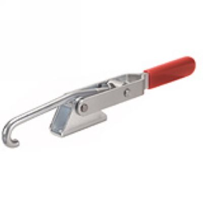 for cylindrical mounting surfaces. Stainless steel, polished. Rivets running in greased, continuous bearing bushes. Handle made of red, oil-resistant plastic. Use socket cap screws to ISO 4762 (DIN 912) for mounting. Also suitable for use in the food indu