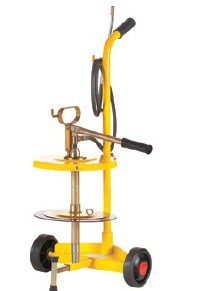 用于20kg油桶,配有: 手动泵 手推车 桶盖?320mm 随动板?310mm 2m橡胶管 球阀M10x1 带4片爪黄油嘴的150mm喷管
