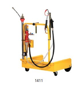 ME1410用于50-60L油桶,配有: R=1:1气动泵,带流量调节器和真空计 4轮手推车 9件导管组套 2m吸油管和出油管