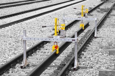 用于钢轨横向、纵向移动 质轻,铝材质 适用于安全、快速、有效的移动转接器,比如钢轨断裂,用于绝缘接头等 有两个支撑结构,一个横梁,一台有液压提升设备的起重机组成 此设备可拆成一个个元件,需要的时候可快速简易组装