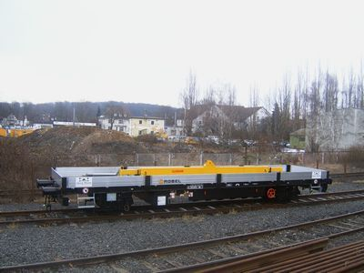 依照UIC的缓冲器,连接器,车盘架 结构的钢地板 轻金属侧板,可折叠,可移动 最大负荷 25 t 附属装置:自卸车,钢轨装载车等