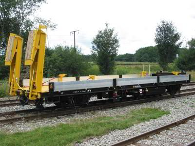 用于运送建筑机械 UIC轴 依照UIC规则在一侧有缓冲器和挂钩 手动液压装卸台 最大负荷25t 附属装置:液压动力总成