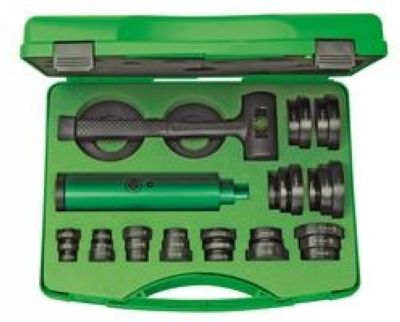 Für den schnellen, pr?zisen und sicheren Einbau von Lagern und Dichtungen von 10 bis 50 mm Die für den jeweiligen Einsatz erforderliche Kombination von Schlagring und Schlaghülse kann der Tabelle im Kofferdeckel entnommen werden. Die erforderliche Kraft w