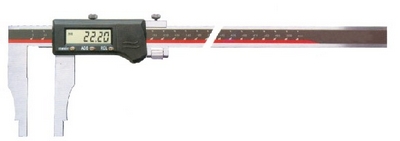 用于快速测量较大工件的外尺寸和内尺寸 大显示屏,读书准确。 上量爪用于测量外径等外尺寸,下量爪可以测量内、外尺寸 配有安全锁螺丝和数据输出功能 零复位可在任意位置置零 刀口上量爪,平面下量爪 微动调节装置,可精密测量,螺钉锁紧 盒装,含电池 游标和主尺激光高精度刻度 不锈钢材质,耐腐蚀不生锈