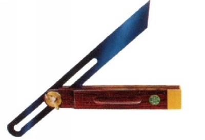 红木柄,上漆,窄槽和末端黄铜嵌入, 蓝色硬质弹簧钢刃边有中心槽, 可以用翼分螺母固定,槽扩张到刃边端部, 能够测量到角落处。
